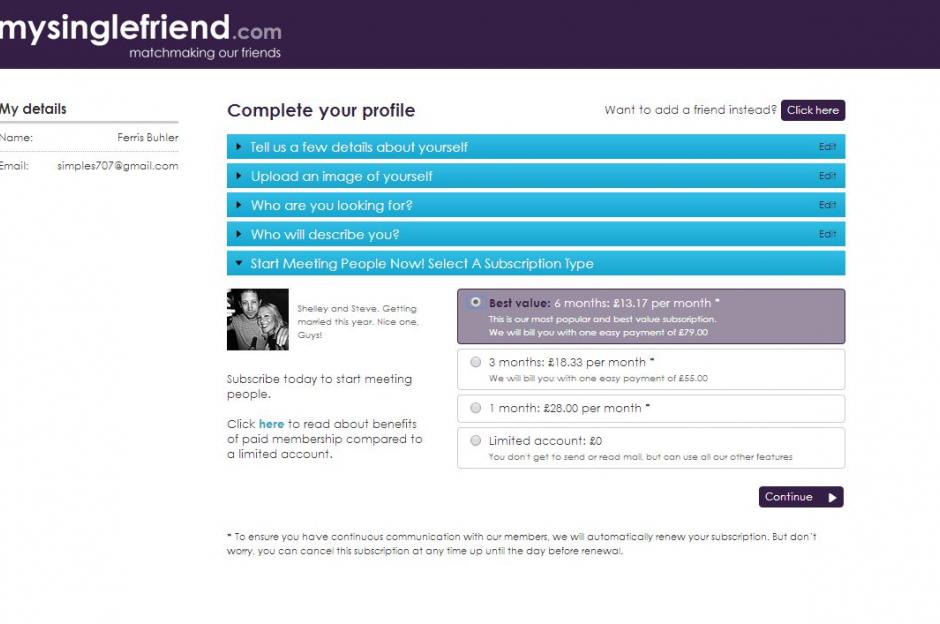 mysinglefriend is free to browse and search and set up your profile, but any communication with other members comes at a cost. Prices are not expensive, ranging between £13 and £28 depending on the duration of your contract.